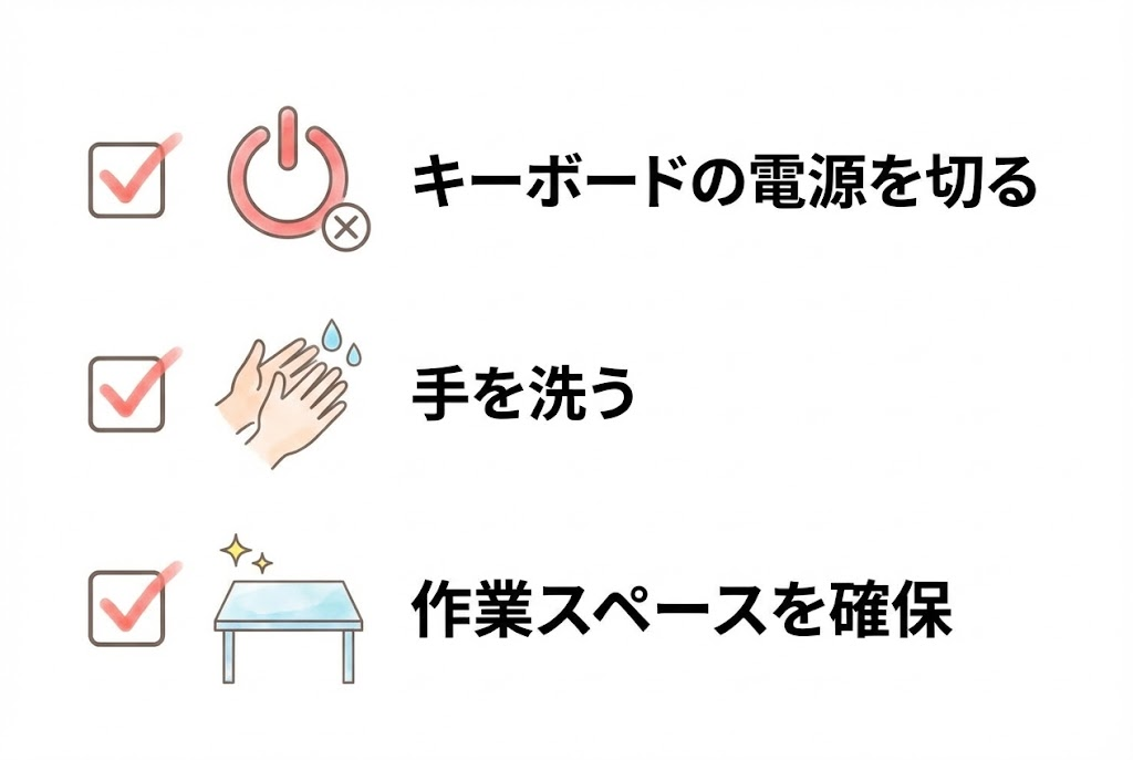 - キーボードの電源を切る – 万が一のトラブルを防ぐため